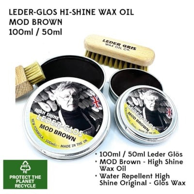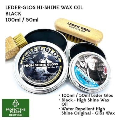 Leder-Glös® was developed for use on high quality full grain leathers where a high shine is desirable. The formula is similar to Leder-Gris® (water repellent) but there is less oil and more wax in the formulation. When buffed strongly it will give a higher shine at the toe and heel, after repeated and successive use. Always follow the user instructions.