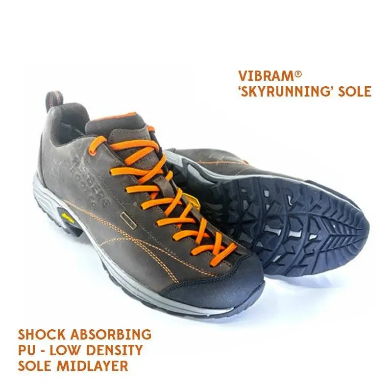 • Sole: Vibram multi-terrain ‘SkyRunning’ sole with PU cushioned/shock absorbing midlayer