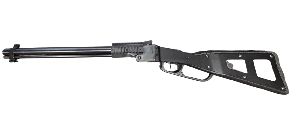 Stock & frame: Skeletonized steel frame with polypropylene foam insert stock (ammo storage built in)
