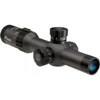 TUBE DIAMETER 30mm MAGNIFICATION 1-4 x OBJECTIVE LENS DIAMETER 24mm No. RETICLES AVAILABLE 4 WATER PROOF YES FOGPROOF YES ILLUMINATED RETICLE YES FOV 32.7-8m/100m COLOUR GRAPHITE LENGTH 10in WEIGHT 692g